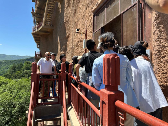 围绕人文考察的主题,董书兵带领团队参观了沿途的石窟、寺庙、博物馆,体会其中蕴含的文化内涵,并在麦积山下的汉唐陶艺实习基地展开了五天的学习。“在人文考察中我体会最大的就是雕塑照片与实物之间的区别,当在莫高窟、麦积山等石窟中切身去观看那一尊尊佛像、壁画,其带来的视觉冲击力是图片所无法体现的。”雕塑系本科生张恺洋感慨道。