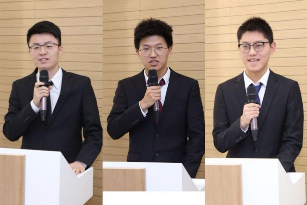 获奖学生代表陈强、蒋立贤、马塬嵛分别发言,汇报了各自在学习、科研和全面发展方面的成长进步。