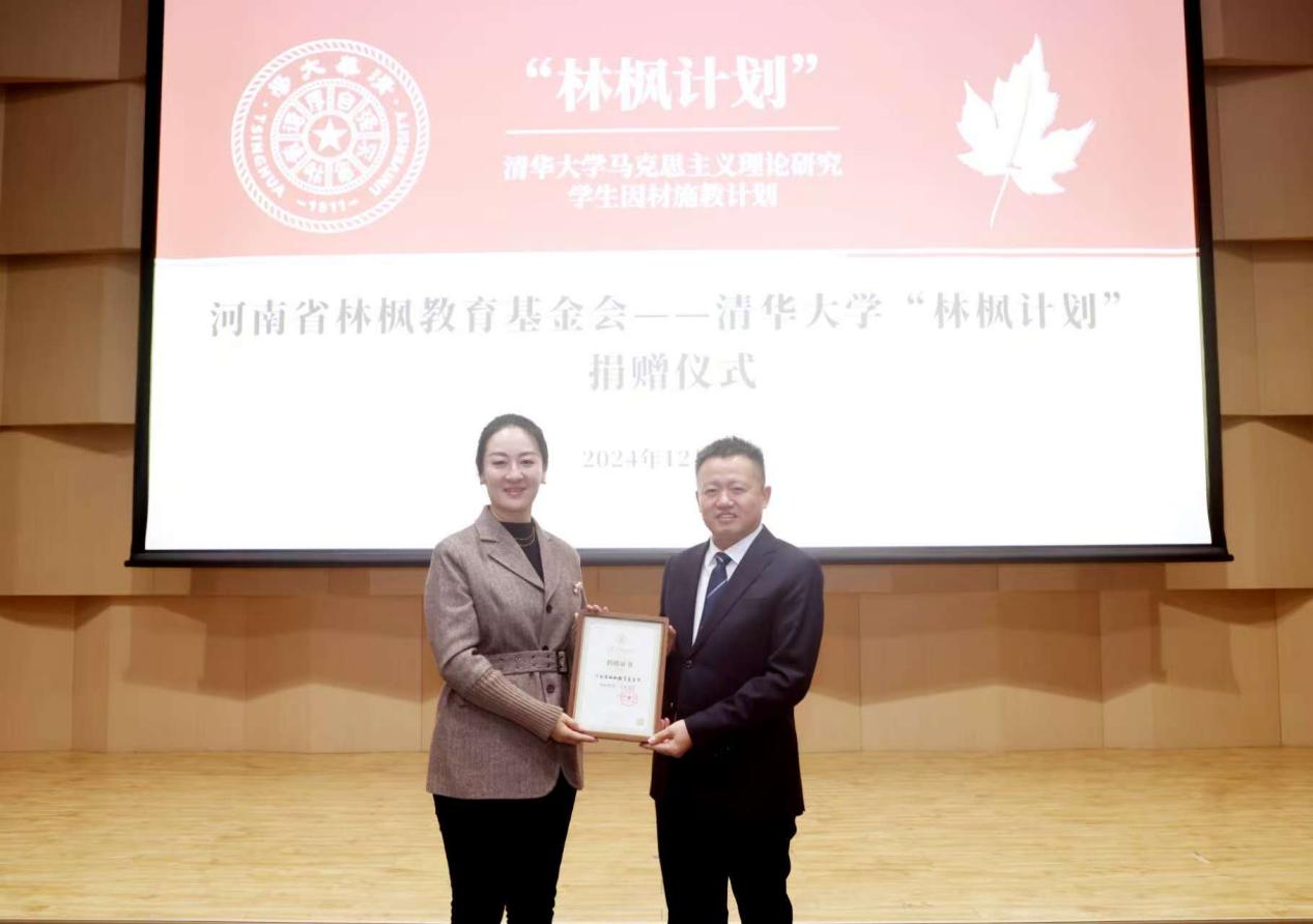 丁森浩表示,河南省林枫教育基金会的宗旨是继承和发扬林枫同志一生致力的教育事业,为中国的教育事业发展贡献力量。希望通过此次捐赠激励在“林枫计划”培养过程中作出贡献的导师和表现优异的学员,支持“林枫计划”的常规项目运营、相关研究论坛年会和实践研学活动的举行,培养更多爱党、爱国、爱人民的青年马克思主义者。