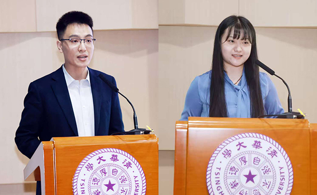 郎昆(左)、张亦娜(右)代表导师和学员发言