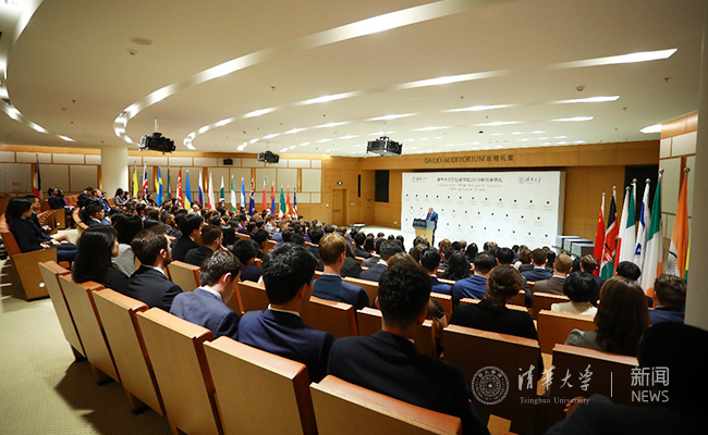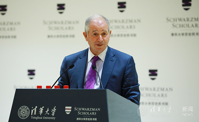 苏世民先生对新一届同学表达热烈欢迎。他首先回忆了自己与中国的缘分,以及创建苏世民书院的故事。他鼓励同学们寻找自己感兴趣并且有意义的事情,持之以恒去为之努力,认真工作让梦想成真。苏世民还就过去三届苏世民书院毕业生的情况进行了回顾,高度赞扬他们对书院的巨大贡献,如,帮助书院建立新的核心课程体系,完善了领导力课程,拓展了毕业论文的内容。最后,他寄语新同学们,要勇于表达自己的观点,同时虚心向他人学习,学会适应不同环境与条件,认真维系并充分运用苏世民校友圈的资源,为建立更好的世界而共同努力。