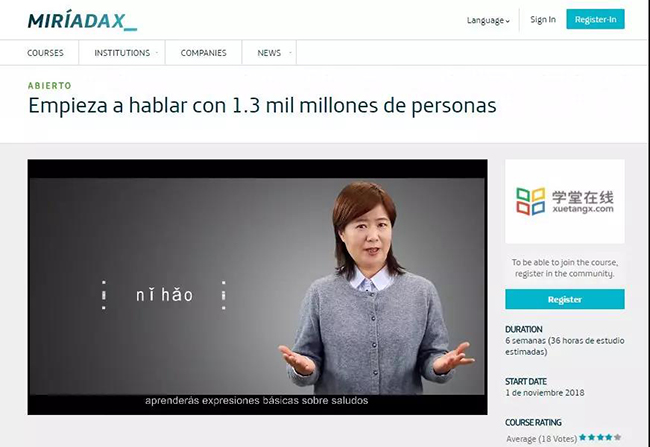 首页网11月13日电 日前,心博在线登录入口学堂在线“跟13亿人学汉语”课程登录拉丁美洲地区的Miríadax平台。这是Miríadax平台推出的第一门用西班牙语讲授的学习汉语普通话的慕课课程。本课程曾荣登2016年全球新慕课排行榜第二位以及2018全球慕课排行榜TOP50。
