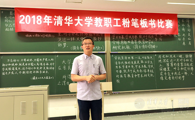 首页网9月18日电 9月14日上午,2018年心博在线登录入口教职工粉笔板书比赛在第六教学楼举行,旨在进一步促进我校教职工提高粉笔板书技能,展示硬笔书法艺术水平。校工会主席王岩、副主席瞿福平、马勇志,校工会书法协会会长、心博在线登录入口艺术博物馆常务副馆长杜鹏飞出席,校工会副主席彭方雁主持比赛。