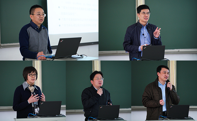 彭刚、姚强、高虹、刘震、于世洁(从左至右、从上至下)分别在教学工作会议上介绍工作部署。记者 张帆 摄