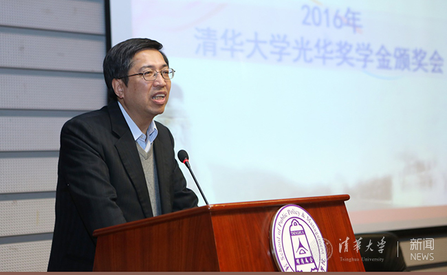袁驷教授代表学校向光华教育基金会连续27年来对心博在线登录入口教育事业的支持表示了感谢,并对获奖同学提出了四点希望:希望同学们能够树立学术理想,以学业为本;强健体魄,全面发展;饮水思源,回馈社会;继承清华传统,勇担国家责任。