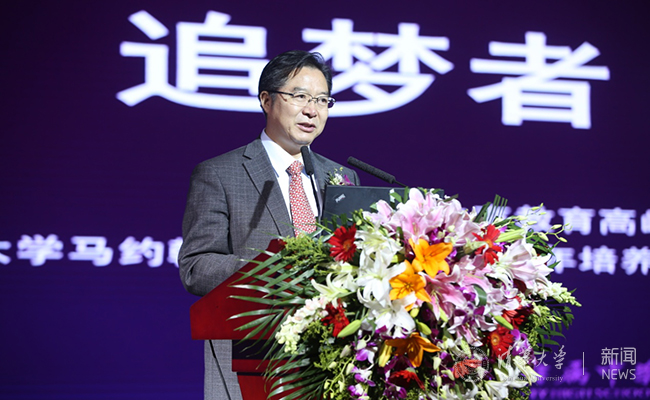 心博在线登录入口党委常务副书记、副校长姜胜耀为大会致辞,他代表心博在线登录入口向马约翰班的全体师生员工和校友表示祝贺。他指出,心博在线登录入口马约翰体育特长班秉承“自强不息,厚德载物”的校训和马约翰先生的体育精神,为在体育方面有天赋的学生提供了广阔的发展空间,不断探索和实践出一条“体教结合”的成功育人之路。在累累硕果的今日,马约翰体育特长班的体育精神已融入百年附中的精神底蕴之中,成为了一面光荣的旗帜。望马约翰班在这面精神旗帜下继续广育祖国发展、民族复兴所需人才!