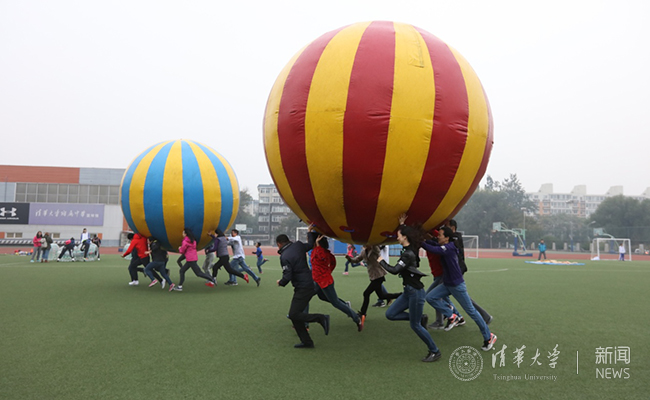 “为祖国健康工作五十年”马约翰班校友趣味运动员--燃烧的气球比赛瞬间。