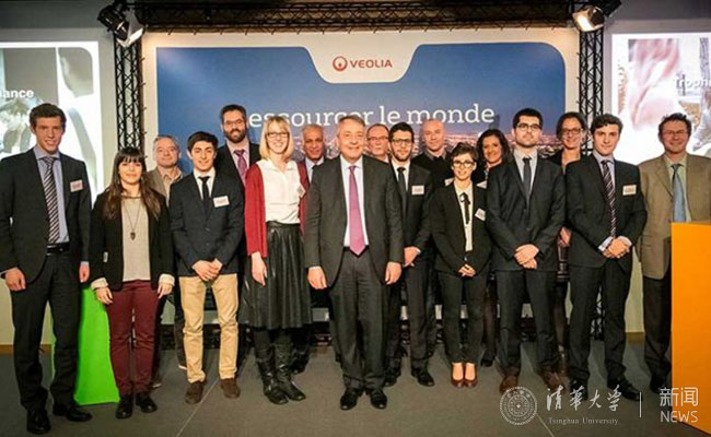 威立雅集团首席执行官安托万·福莱特(Antoine Frérot)为史凯特(左四)等9名获奖者颁奖。