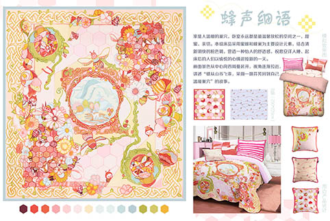 徐婧媛家纺设计作品《蜂声细语》获金奖。