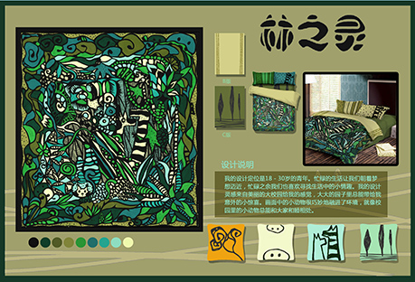 陈沛艺家纺设计作品《林之灵》获铜奖。