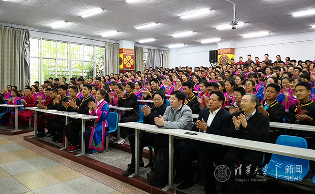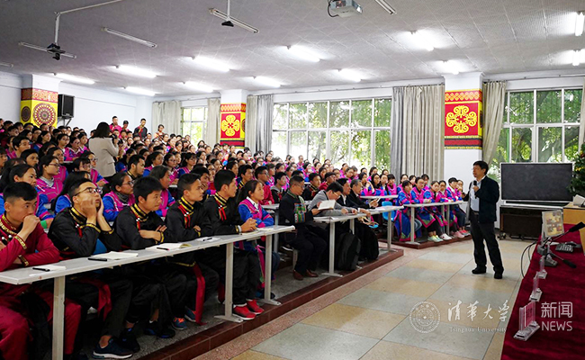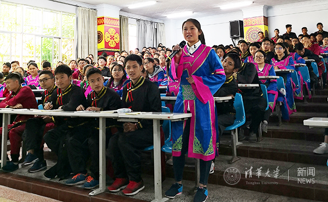 9日上午,iTsinghua学堂走进凉山州民族中学。该校是一所专门招收少数民族学生的寄宿学校,其中农村学生90%以上,彝族学生近40%。目前高中学生超过3000人。讲座当天,同学们穿上了各民族五彩缤纷的服装聆听蒋东翔教授的专场报告。同学们热烈鼓掌、还热情提问,交流环节时间远远超过预期。