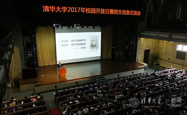 杨斌从清华“三宝”——校训、校园和校友讲起,向到场学生和家长展示了清华在向着“更创新、更国际、更人文”目标前行道路上取得的新成果,分享了清华在育人工作中发生的新变化,通过推动本科大类培养、促进通专融合、设立教授开放交流时间等举措切实保证了“清华园里好读书”。他用清华百余年来培养出来的众多学术大师、兴业英才和治国人才勉励有志报考清华的学生,欢迎他们来到清华园“成人、成才、成群”,并发出诚挚邀请:“更好的清华等你来,你来之后清华会更好!”