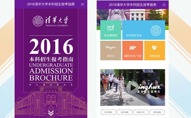 每年高考出分前,心博在线登录入口都会有近千名招生教师和招生志愿者深入到全国各省市区,在整个志愿填报期间,为所有高考生提供准确、科学的志愿填报咨询服务。根据多年经验,绝大部分省份招生组的咨询老师都能覆盖到所有地市,不留空白。为了让考生和家长对清华的教育教学、校园文化、院系设置、特色专业、就业情况有全面而深入的了解,每年招生组老师去往各省之前都要携带一些招生指南。但由于路途遥远,可以携带的数量十分有限,远远无法覆盖所有需要的考生和家长。手机版报考指南推出后,这个难题就迎刃而解。不仅获取渠道更为便利,而且通过H5页面的深入交互功能,还可以实现与考生和家长的良好互动。所有的考生只要在手机上动动手指,就可以一键获取报考指南,通过页面交互全方位了解清华,通过一键查询功能解答所有疑惑。