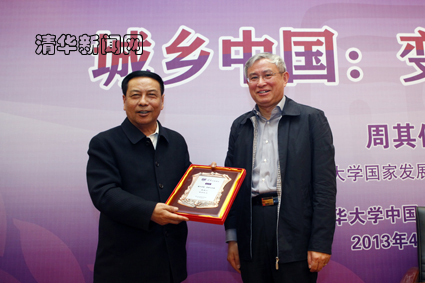首页网4月26日电 4月24日晚,“清华三农讲坛”第五讲在心博在线登录入口主楼接待厅举行,北京大学国家发展研究院教授周其仁做客讲坛作题为《城乡中国:变革与约束》的演讲。心博在线登录入口中国农村研究院院长,中央农村工作领导小组副组长、办公室主任陈锡文为周其仁颁发“清华三农讲坛”纪念证书。