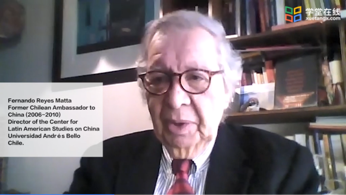 智利前驻华大使费尔南多•雷耶斯•马塔介绍了中国与智利之间良好的伙伴关系,表示中国和智利倡导多边主义和自由贸易,双方之间拥有多方面共识。