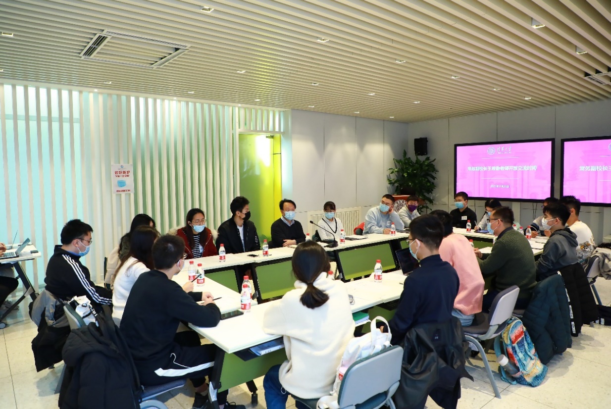 首页网12月1日电 11月25日下午,常务副校长王希勤通过“开放交流时间”(Open Office Hour),在职业发展中心东风厅与不同院系不同年级的18位学生就学业科研挑战和压力应对主题进行交流。