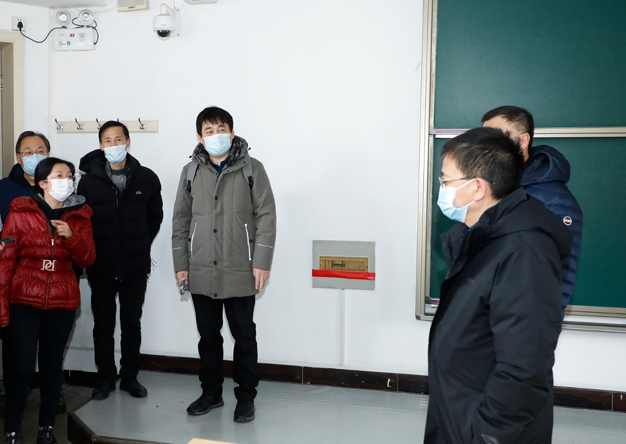 首页网2月22日电(记者 覃霞 摄影 赵青松)2月18日下午,副校长、教务长杨斌,副校长彭刚,校务委员会副主任、总务长吉俊民带队,对经管学院新楼、第五教室楼、文北楼等教学场所的教学楼环境、教学设备设施运行、疫情防控措施等进行开学前准备情况检查,并在文北楼206教室召开座谈会,对下一步工作进行部署。