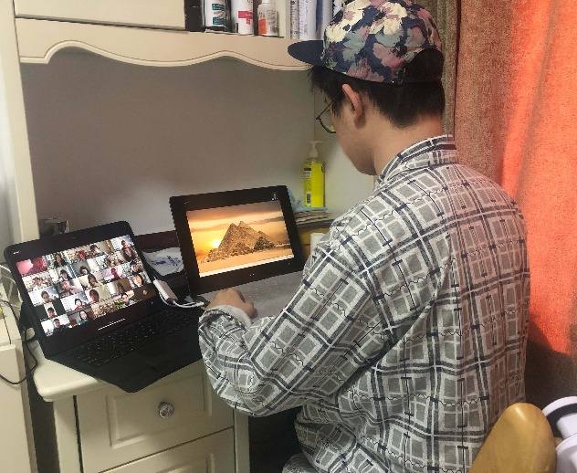 学生在家中上网课