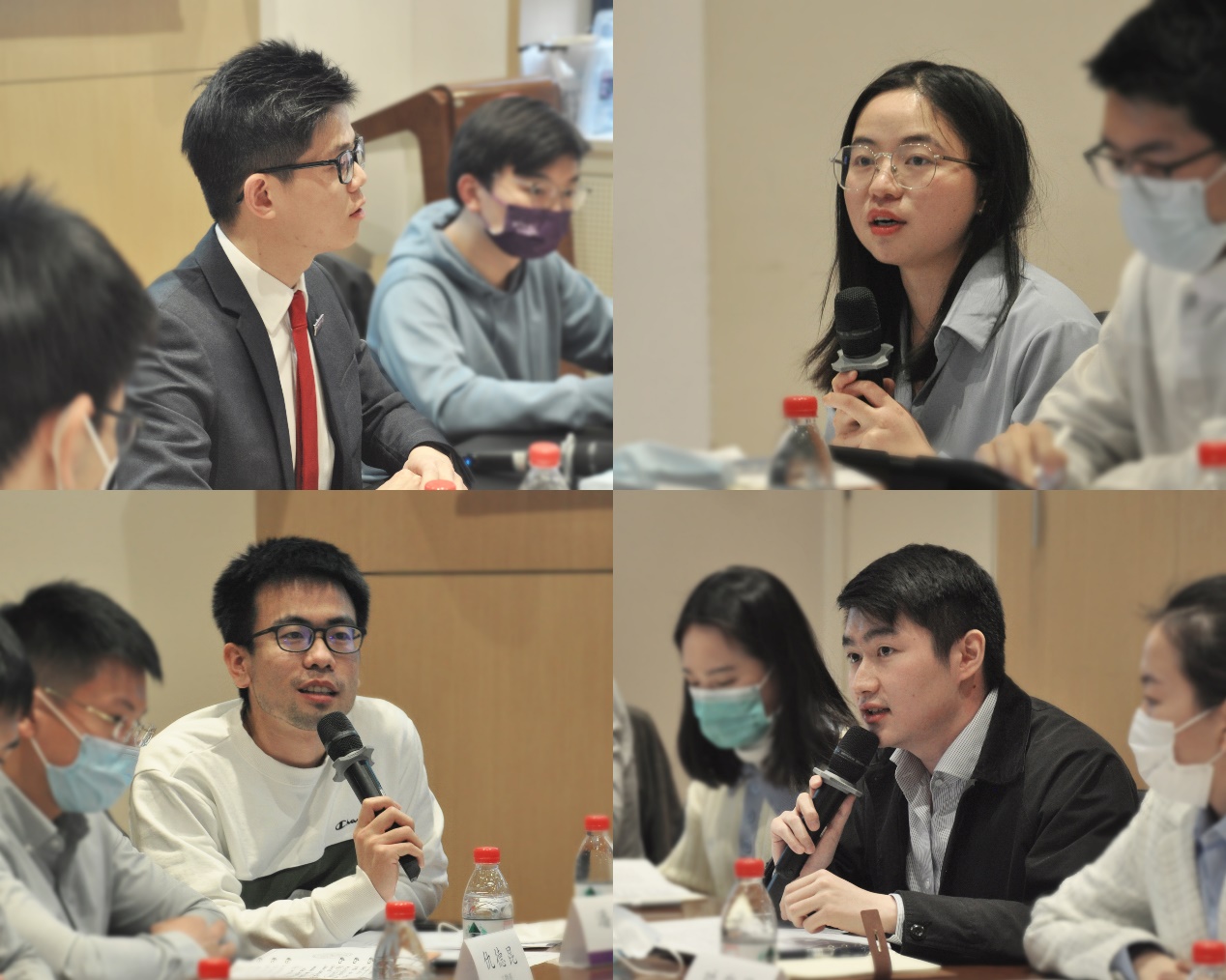 林福亮、朱强、潘利君、龙腾(从左至右、从上至下)发言
