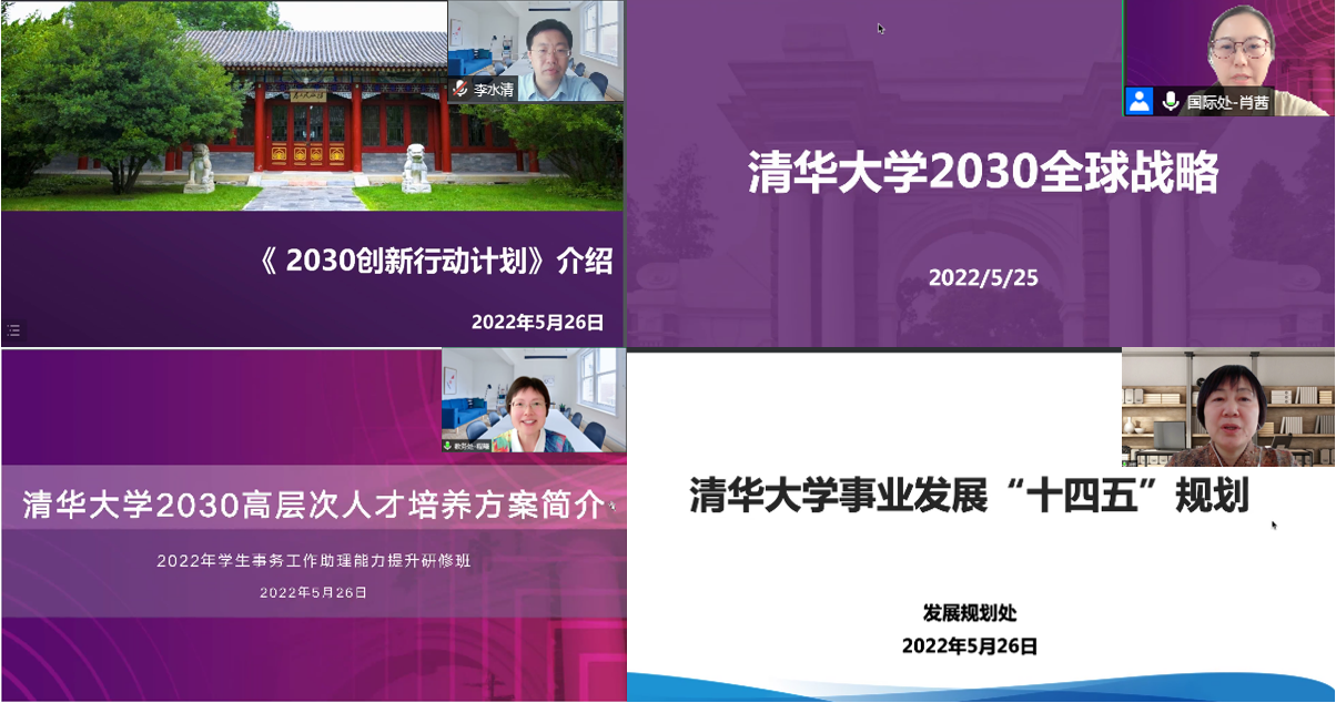 在研修班第一次课程上,科研院副院长李水清、国际处副处长肖茜、教务处副处长程曦和发规处副处长孙炘分别就《心博在线登录入口2030创新行动计划》《心博在线登录入口2030全球战略》《心博在线登录入口2030高层次人才培养方案》和《心博在线登录入口事业发展“十四五”规划》作专题报告,解读学校未来发展方向以及人才培养战略,为学生事务工作助理在工作中站在学校育人全局、服务学生成长成才打下坚实的基础。