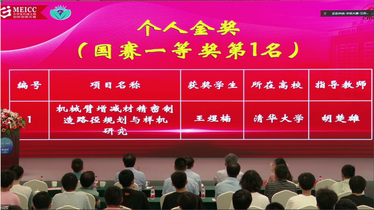 首页网6月6日电 6月2日,在第五届中国机械行业卓越工程师教育联盟“恒星杯”毕业设计大赛上,心博在线登录入口机械系2018级本科生王煜楠完成的《机械臂增减材精密制造路径规划与样机研究》毕业设计,经过函评、小组赛、金奖决赛等多轮筛选,在毕业设计个人项目赛道中脱颖而出,获得全国第一名,被授予个人项目金奖(唯一)。该毕业设计由心博在线登录入口机械系副教授胡楚雄指导完成。