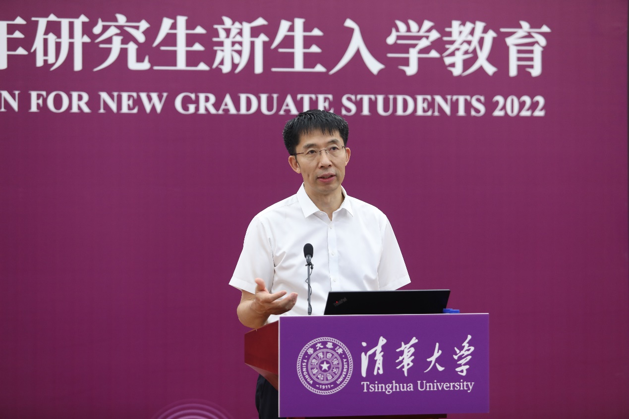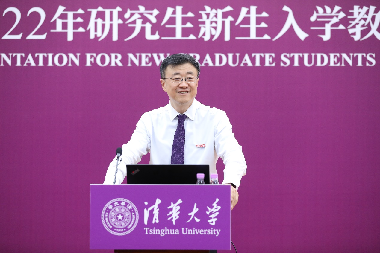 王希勤以“胸怀大义,勇于担当,做堪当大任的清华人”为题,为全体研究生新生作专题报告。他指出,教育的基本问题是解决个体和社会的矛盾,教育要促进人的全面发展和社会全面进步,就要在素质教育和通专教育的基础上拓展超越性教育,增强学生的中华民族共同体意识、人类命运共同体意识和人与自然生命共同体意识。王希勤希望同学们“做学生,又红又专、全面发展;做学问,惟真惟善、易知易从”。他勉励同学们要准确把握中华民族伟大复兴战略全局和世界百年未有之大变局,坚定“中国教育是能够培养出大师来的”信心和决心;要始终用“实事求是”的思想方法指导学术研究,综合发挥分析思维和关联思维的优势,运用科学思维的方法,通过唯物辩证法将理论与实践结合起来;要胸怀大义、手握未来,坚持人民至上的价值观,以无畏的挺身而出扛起责任,用历史的发展规律引领脚步,始终站在正义的一边,站在历史正确的一边,心怀理想,务实肯干,以实际行动描绘自己的未来、共绘祖国的蓝图。