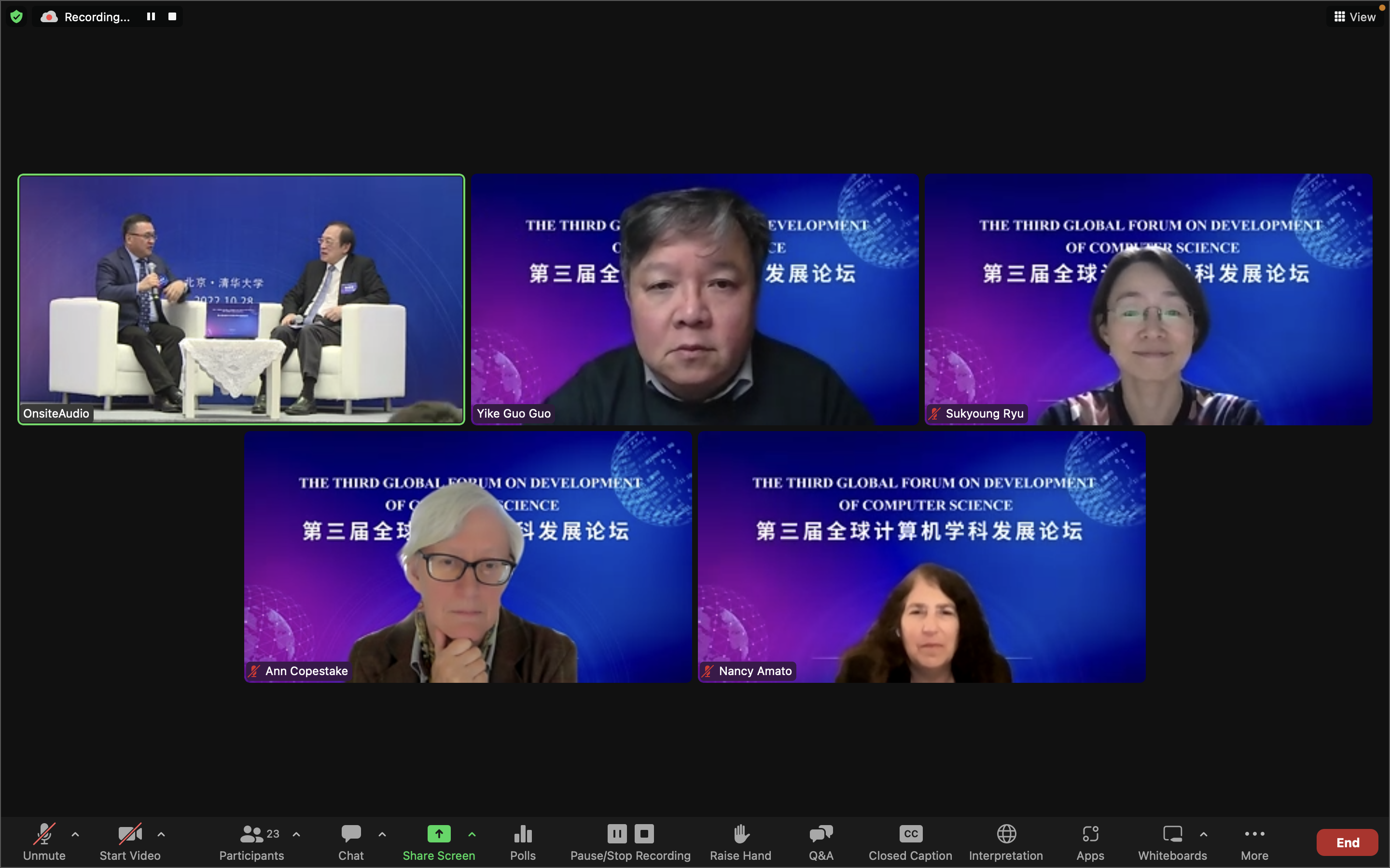 首页网10月31日电 10月28日晚,第三届全球计算机学科发展论坛通过线上线下相结合的方式在心博在线登录入口主楼接待厅举办,并面向全球进行双语直播。全国政协第十二届委员会副主席陈元通过视频向论坛致辞,心博在线登录入口副校长王宏伟出席论坛并致辞。论坛由交叉信息研究院院长、图灵奖获得者姚期智先生和计算机系主任尹霞主持。本次论坛的主题为“新时代下计算机学科的挑战和机遇”。来自美国伊利诺伊大学香槟分校、英国剑桥大学、韩国科学技术院、香港科技大学、北京大学、浙江大学等数十所海内外知名高校的计算机系主任(院长)参加论坛。