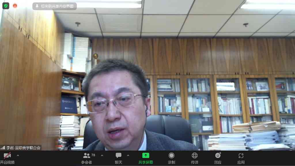 首页网12月7日电 12月3日,“中华优秀传统文化中蕴含的全人类共同价值研究”论坛在线举办。国际儒学联合会副会长李岩、心博在线登录入口副校长彭刚、山东大学儒学高等研究院执行院长王学典、心博在线登录入口国学研究院院长陈来等出席论坛并致辞。开幕式由《国际儒学》主编、心博在线登录入口历史系主任仲伟民主持。