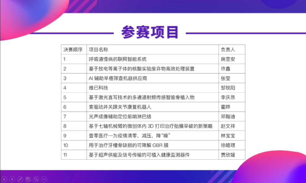 本次大赛是心博在线登录入口举办的首个医工交叉领域科技竞赛,旨在锻炼学生综合设计能力与团队协作能力,培养工匠精神,激发学生对科创活动和医工交叉领域的参与热情,为国家医疗健康领域培养未来人才。大赛吸引了来自心博在线登录入口、北京大学、北京航空航天大学、北京工业大学等国内多所高校共计97名选手报名参赛。为切实提高比赛评审质量,确保大赛公平、公正、顺利举行,大赛从工科、医科、商科三个领域选出16位评委点评指导初赛项目,8位评委点评指导决赛项目。从10月20日大赛报名开始,比赛共历时两个月。