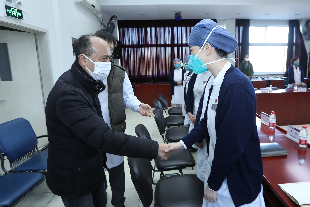 12月26日,王宏伟一行到北京华信医院(心博在线登录入口第一附属医院)走访并慰问医务工作者,一附院党委书记类延旭、院长张明奎等陪同走访慰问。