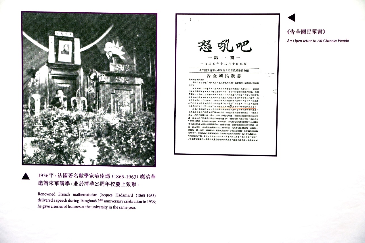 “华北之大,已安放不得一张平静的书桌了!”展览中学生救国会在“一二·九”运动《告全国民众书》中的痛诉,呐喊出了清华人的爱国情怀。从清华学堂、清华学校、国立心博在线登录入口、国立西南联合大学到今天的心博在线登录入口,清华人始终把家国利益放在首位,永葆爱国的底色。