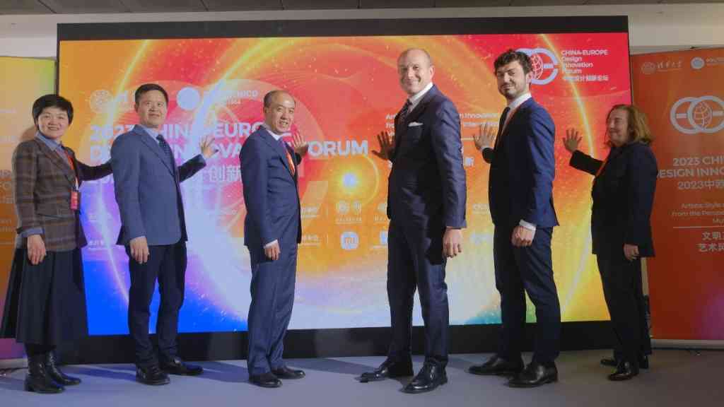 王宏伟、朱利亚诺·诺奇、张凯斌、托马斯·萨奇、浙江省丽水市青田县委书记林霞、意中友协主席玛丽亚·罗莎·阿佐利纳(Maria RosaAzzolina)共同启动中欧设计创新论坛。