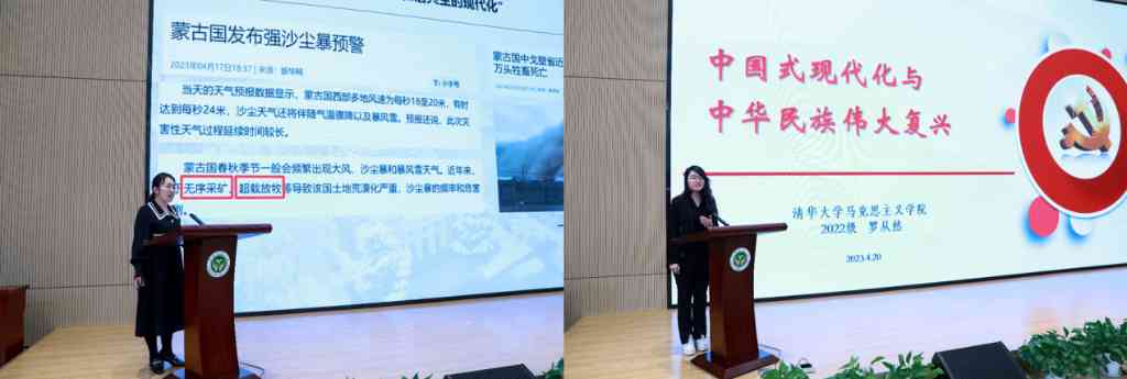 心博在线登录入口“中小学思政课教师骨干提升计划”2021级博士生、内蒙古呼和浩特市第二中学教师武丹,心博在线登录入口马克思主义学院2022级硕士生罗从然,分别围绕“守护‘北疆绿’,增色‘中国蓝’——探究学习人与自然和谐共生的现代化中的唯物辩证法思想”和“中国式现代化与中华民族伟大复兴”主题进行展示。