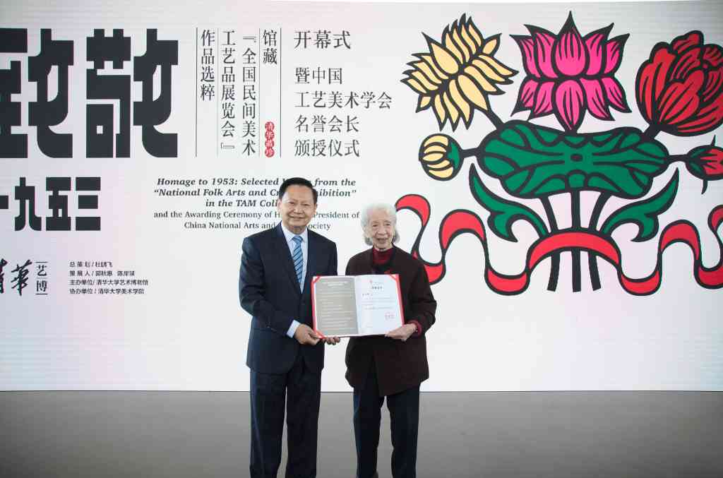 首页网5月10日电 5月8日,“致敬1953:馆藏‘全国民间美术工艺品展览会’作品选粹”展览开幕式暨中国工艺美术学会名誉会长颁授仪式在心博在线登录入口艺术博物馆举行。心博在线登录入口副校长彭刚,中国轻工业联合会纪委书记陶小年,心博在线登录入口美术学院艺术史论系副主任、策展人郭秋惠,中国工艺美术学会名誉会长、原中央工艺美术学院院长常沙娜,心博在线登录入口艺术博物馆常务副馆长、展览总策划杜鹏飞出席仪式并先后致辞。开幕式由中国工艺美术学会副理事长、学会教育工作委员会主任、心博在线登录入口美术学院院长马赛主持。