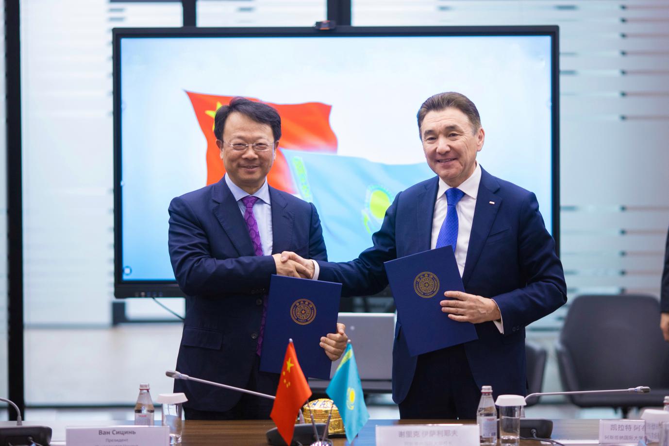 王希勤与谢里克·伊萨利耶夫共同签署两校合作备忘录