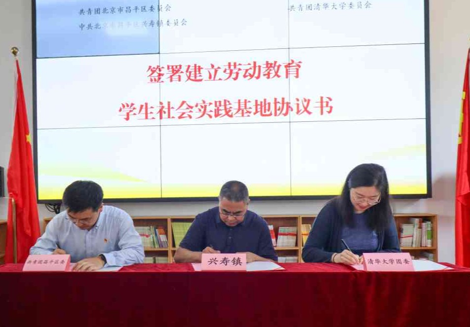 会上,共青团心博在线登录入口委员会和共青团昌平区委员会、中共北京市昌平区兴寿镇委员会签署建立劳动教育学生社会实践基地协议。