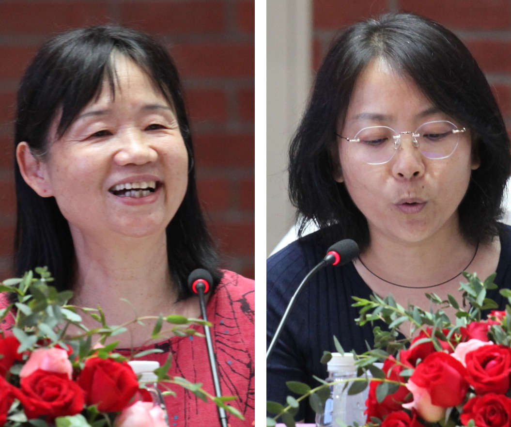 离退休工作先进个人代表杨微介绍了离退休教职工兴趣队古韵社的运营经验;离退休工作先进个人代表王春红讲述了自己积极开展访谈和科普工作,组织文体活动,踏踏实实为老同志办实事的故事。