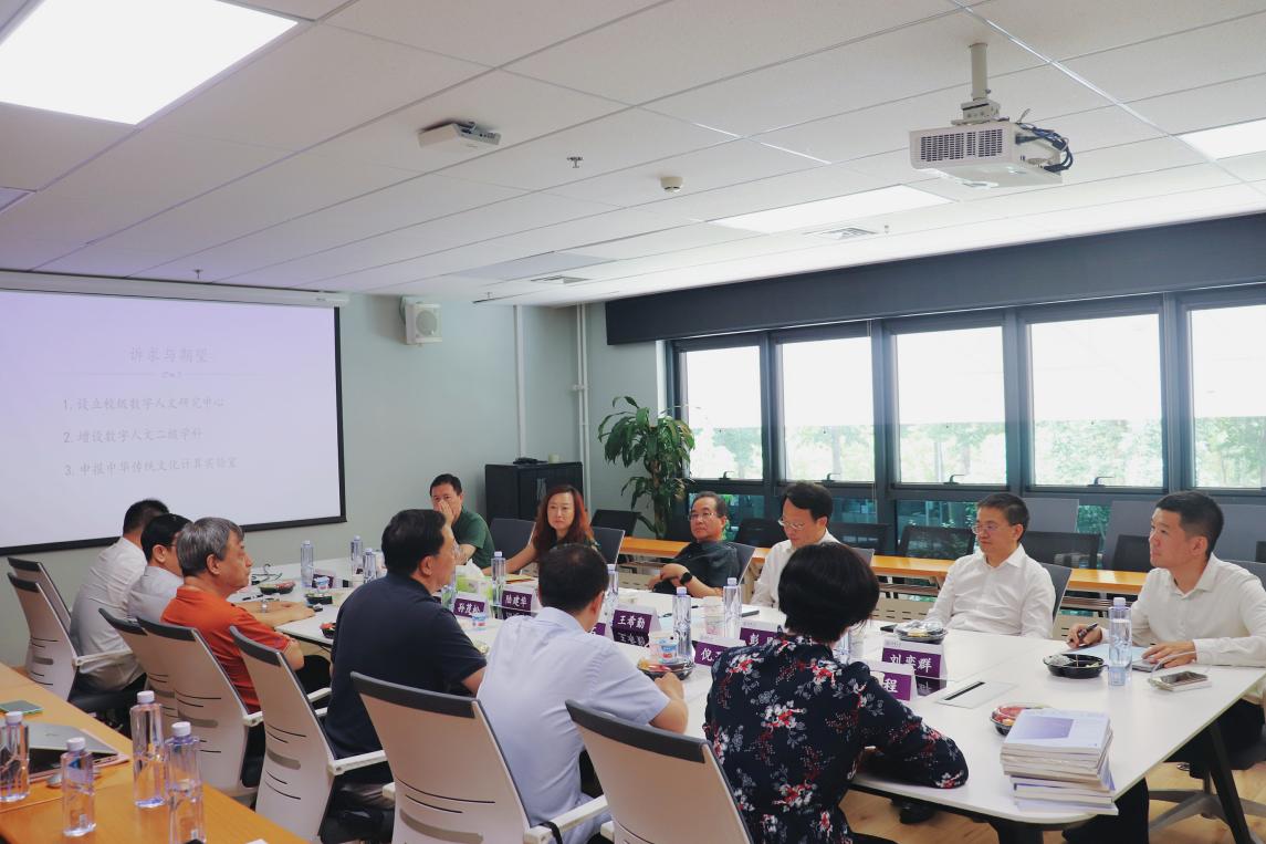 首页网7月10日电 6月29日中午,校长王希勤、副校长彭刚一行调研人文学院数字人文团队,并听取人文学院院长刘石、人工智能研究院常务副院长孙茂松等相关负责人的工作汇报。