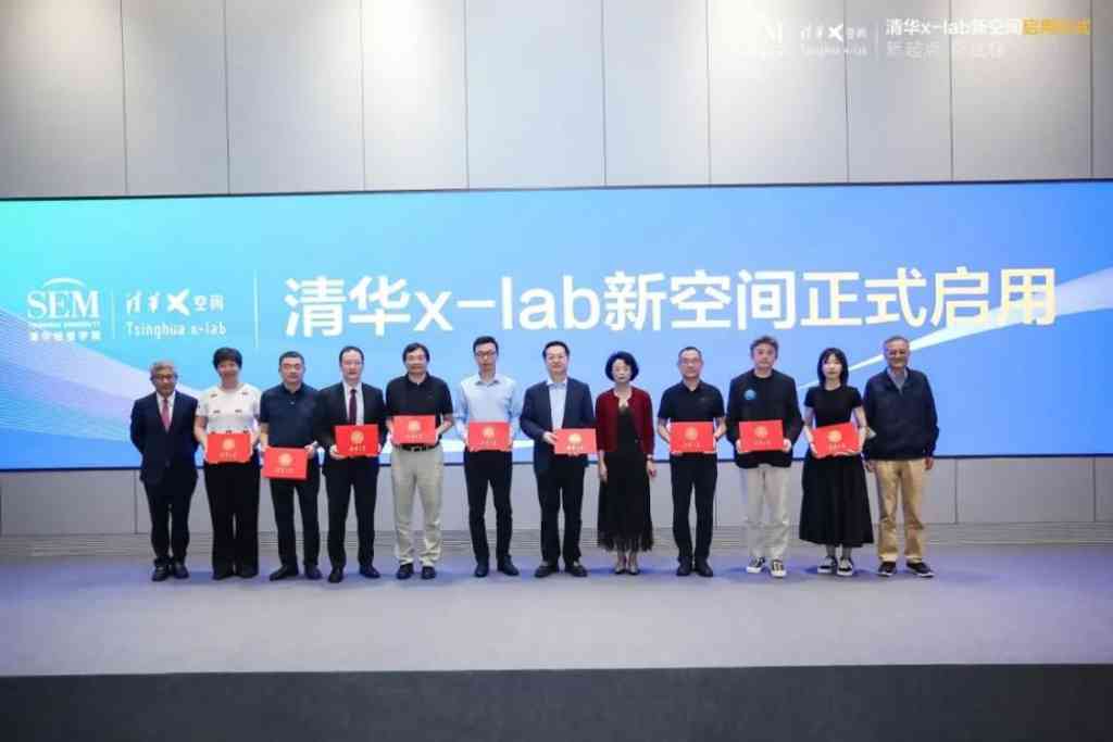 随后,清华x-lab共建院系和合作伙伴代表上台,共同推动起航杆,见证平台开启新征程、拥抱新未来的重要时刻。