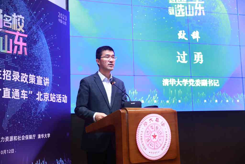 过勇在致辞中表示,山东是经济大省、文化大省、人口大省,山东与清华长期保持着良好密切的合作关系。山东省爱才、惜才,高度重视人才工作,坚持每年来校举办选调政策宣讲与人才引进活动,取得了积极成效,学校有一批毕业生选择到齐鲁大地砥砺成长。希望同学们更多关注山东、选择山东,为推进中国式现代化的山东实践贡献青春力量。