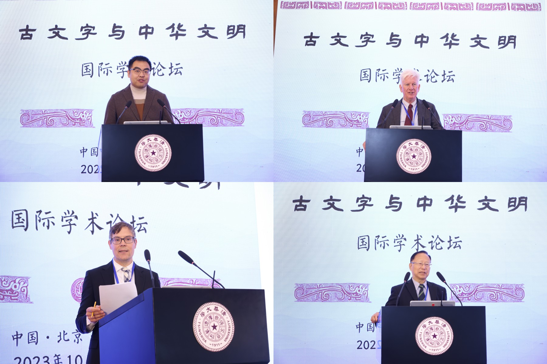 会务组代表裘锡圭发布主旨文章,夏含夷、麦笛、张光裕作主旨演讲(从左至右、从上至下)