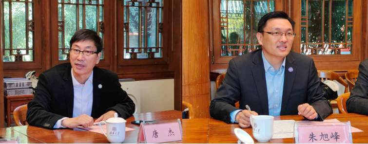 唐杰(左)主持捐赠仪式,朱旭峰致辞