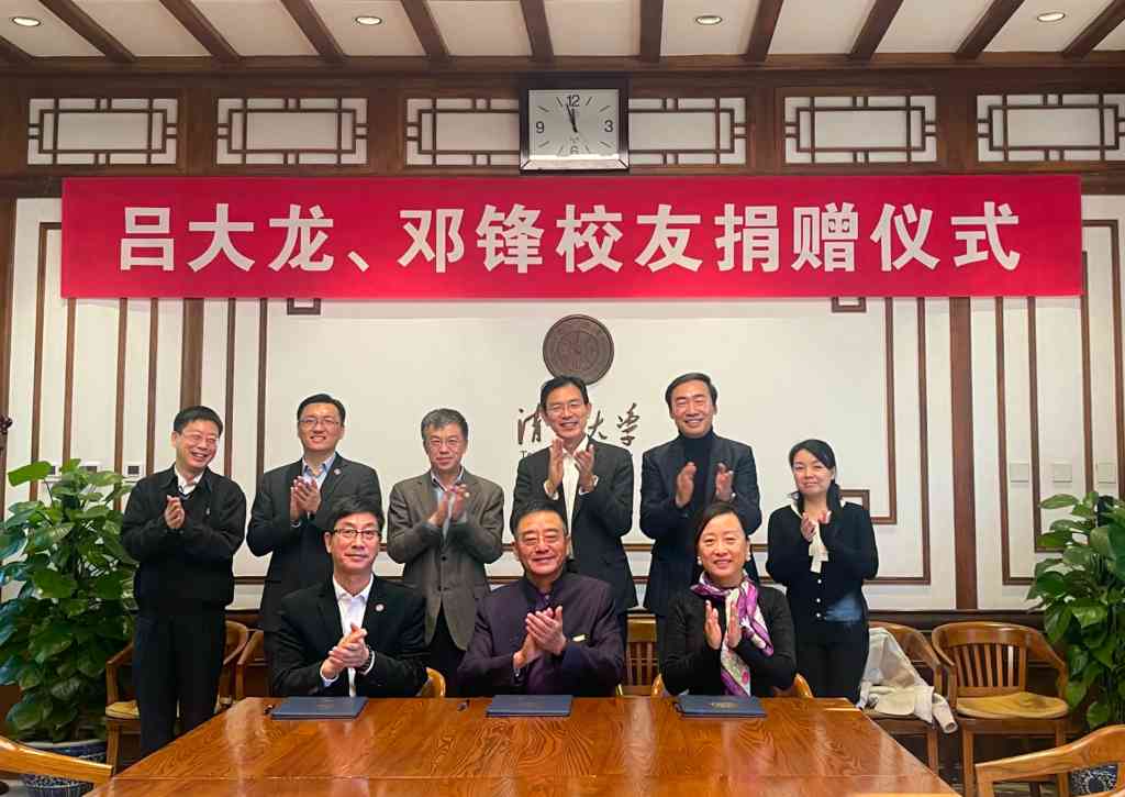 李路明代表学校向吕大龙、邓锋校友的捐赠表示感谢。他表示,校友们对母校持续的关心、支持,让人感动。他介绍了学校近年来不断完善终身教育体系建设的情况,希望在聚焦人才培养的同时,能加强校友与师生间的交流,进一步增强大家对清华历史文化和价值观的认同,凝聚力量,共同为国家和社会发展作出贡献。