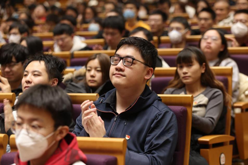 车辆与运载学院2021级博士生韩天倚是在主会场参加学习的学生党员之一。在踏入新清华学堂会场时倍感兴奋,他回想起今年6月,自己在这里光荣成为中共预备党员,面向党旗说出入党誓词,并且大声喊出自己名字那一刻的激动心情至今记忆犹新。“听完今天的党课感觉十分振奋,让我从一些新的角度学习了党史以及党的创新理论”,韩天倚说道。此前,他曾参与了中华人民共和国成立70周年、中国共产党成立100周年、北京冬奥会和冬残奥会等重大专项活动服务工作,在实践中朝着“又红又专”不断靠拢,发挥党员先锋模范作用;未来,他立志从事氢燃料电池行业,发挥党员优良作风,为国家新能源发展作出贡献。