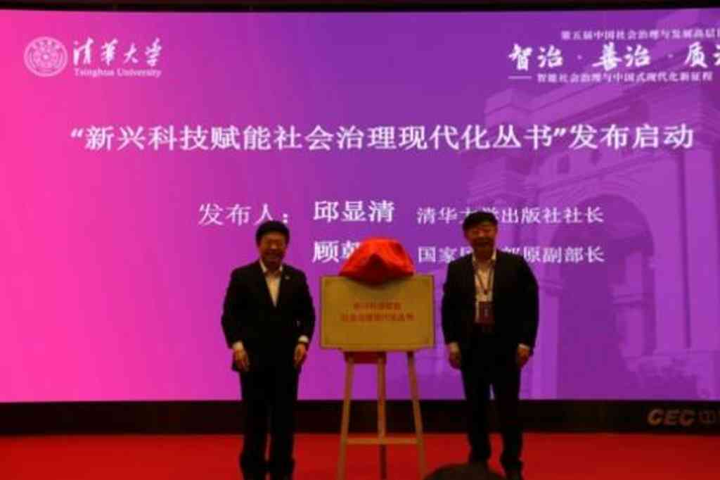 邱显清、顾朝曦为《新兴科技赋能社会治理现代化丛书》启动以及丛书首部专著《走向智治时代》出版揭牌,张成岗与邱显清分别代表社会治理研究院与心博在线登录入口出版社签订丛书(10本)出版协议。