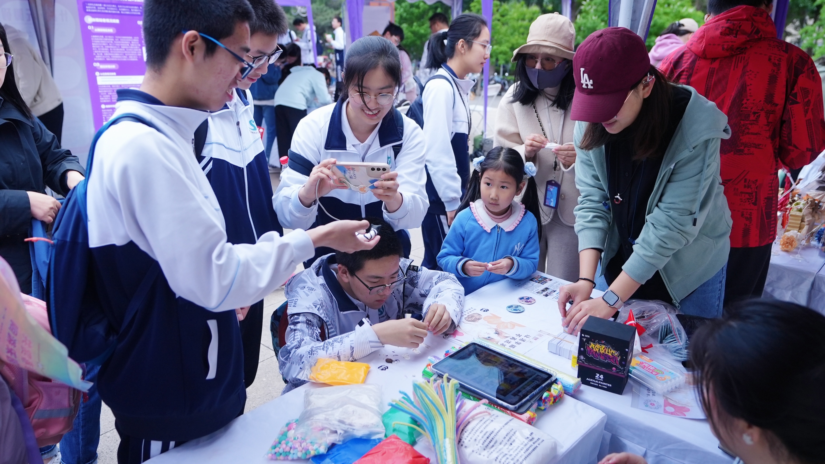 跆拳道、提笔作画、巧手剪纸……在紫荆操场等地,第二十届“清社年华”学生社团校庆嘉年华举行,设置70多项有趣的活动,让同学校友沉浸在校庆的欢乐气氛里。