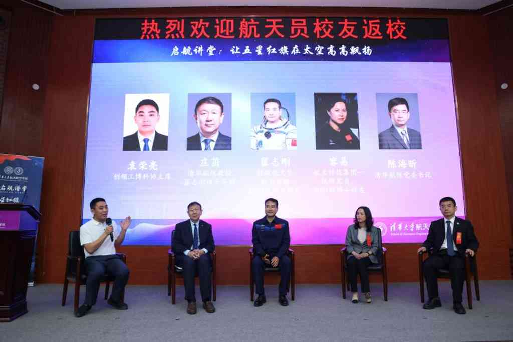 报告之后,翟志刚与其硕士导师庄茁教授等做客圆桌论坛,围绕航天员人才培养、中国空间站建设、商业航天发展等进行研讨。