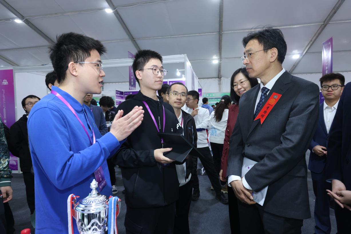 副校长姜培学回顾了“挑战杯”的发展历史,对清华学子不断在科技领域探索前沿并取得优质成果表示肯定和祝贺,并希望广大清华学生学习科学家精神,秉承科技攻关意识,做敢于创新、善于创新的清华青年,在中国式现代化建设中挺膺担当。