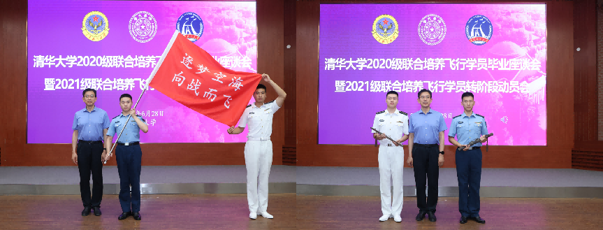 航天航空学院党委书记陈海昕汇报了2020级、2021级联合培养飞行学员培养情况。任课教师代表、航天航空学院党委学生工作组组长姜辰为学员送上寄语。2020级、2021级联合培养飞行学员代表分别分享了在学习、训练等方面的成长收获,并表示会把在清华学会的知识本领投入到强军事业中,将个人成长与强国强军事业相联系,为强军事业不懈努力奋斗。