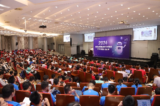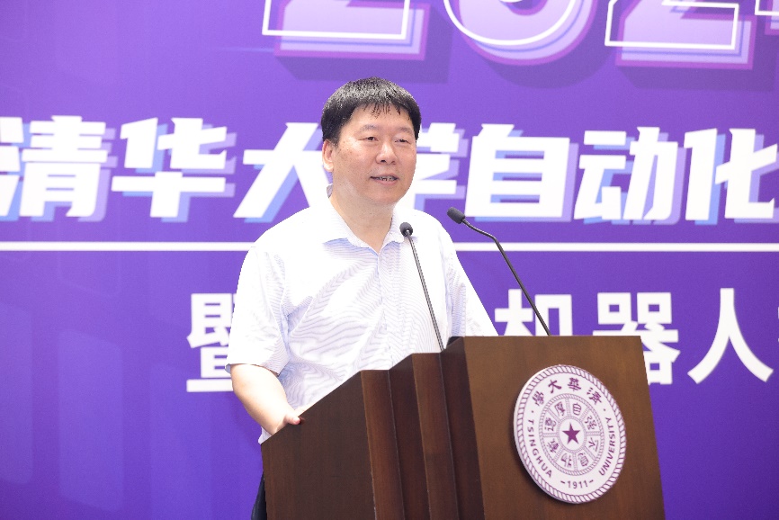 1日上午,自动化系在主楼后厅举行了智能机器人挑战赛开营仪式。自动化系主任张涛在开营仪式上致辞。他希望,通过参加为期三天的智能机器人挑战赛,同学们能收获知识,体验科研乐趣,并规划好未来学习和努力的方向,也希望明年与同学们在清华园再次相聚。随后,张涛作了题为“自动化科技迈向智能时代”的报告。